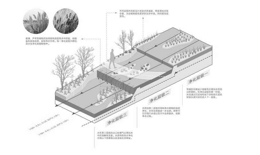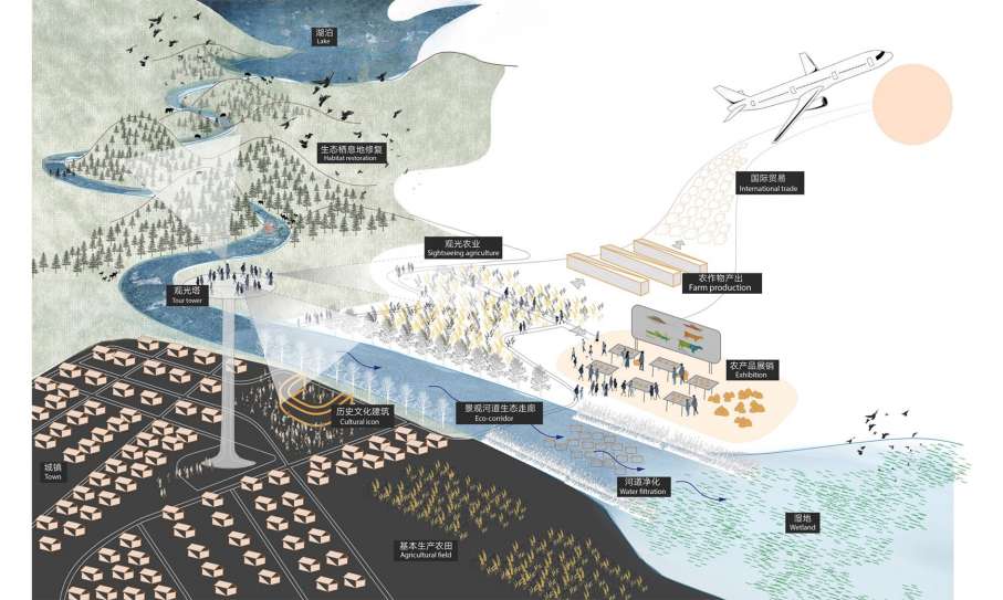 Baopo’s new nature corridor is framed by public oriented uses including a sports village, competition venues and cultural and government facilities along with commercial, residential and hospitality uses. It will provide ecological and water quality benefits as well as open space linkages and recreational amenities, ultimately transforming the Baopo district into an environmentally responsible, balanced, active and dynamic northern extension of Sanya City, reconnecting Sanya Bay with Hainan’s beautiful central mountains.
