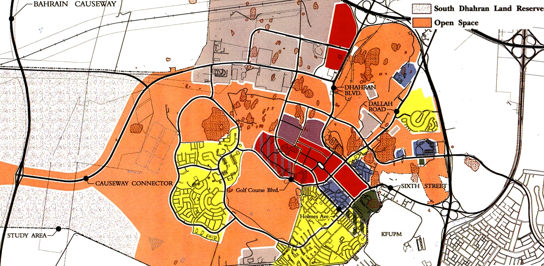 Masterplanning services were provided to Saudi Aramco to develop a comprehensive plan for all company-controlled land within Dhahran. The masterplan has three essential building blocks: an overall Framework Plan, individual District Plans and Design Guidelines. The Framework Plan defines the key structuring elements - open space, land use, circulation and utilities - at the community planning scale. Five individual District Plans were established within the 6,000-hectare Dhahran study area to address issues such as phasing, replacement of aging facilities, roadway improvements and parking.
