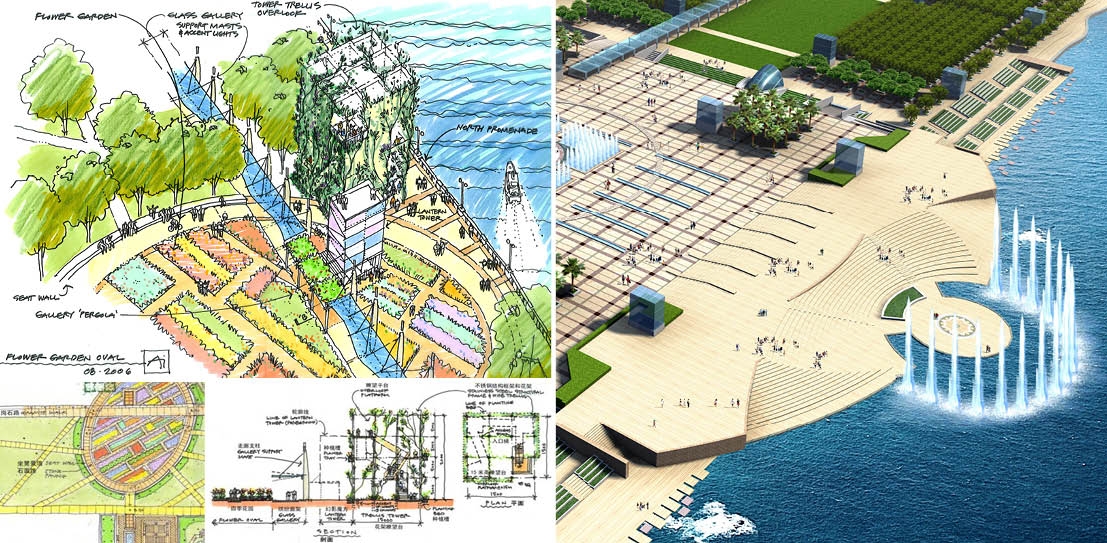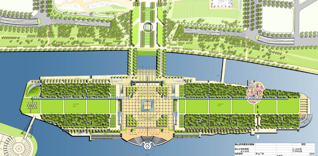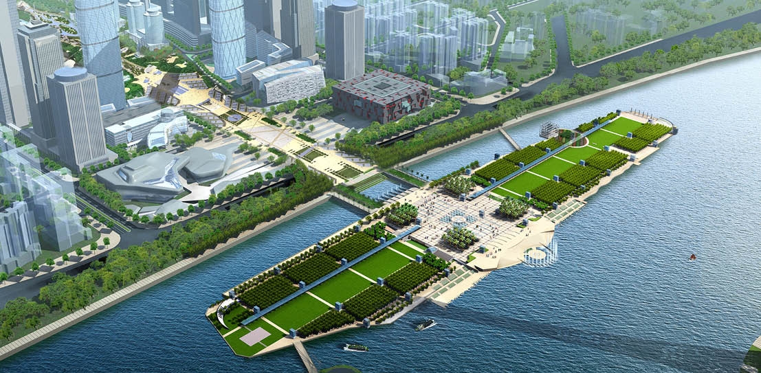 Site planning, landscape and architectural design services were provided to develop the concept design for Haixingsha, an island in the Pearl River in the City of Guanzhou. Located at the south end of the main north-south axis of the city's new CBD development, Haixingsha will provide a new "Civic Garden" for the city and will include community recreation space, a large civic-scaled festival space, art and cultural amenities as well as public access to water transportation and the Pearl River environment.