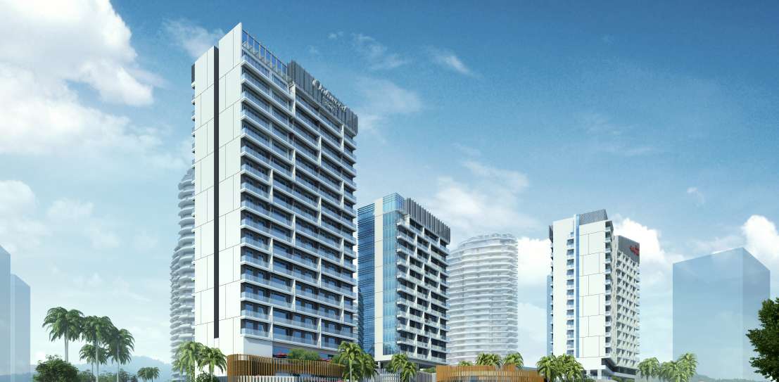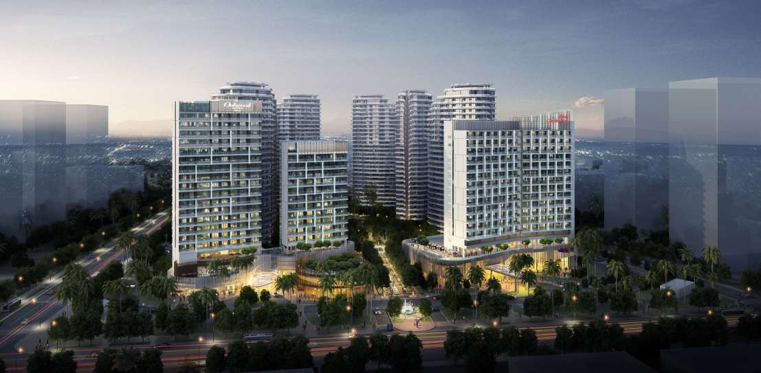 The project, located one block north of the beach and west of Sanya downtown,aims to create a relaxed, comfortable and attractive community of residences, hotel and serviced apartments in a tropical resort-like atmosphere. The 200-key Oakwood Serviced Apartment is part of a 8-tower building complex. The other buildings include a 300-key Hilton Garden Inn, 1200-unit residential towers, club facilities, a kindergarten and retail spaces.
