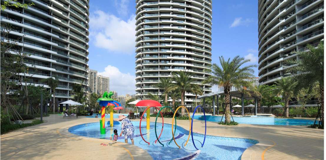 The project, located one block north of the beach and west of Sanya downtown, aims to create a relaxed, comfortable and attractive community of residences, hotel and serviced apartments in a tropical resort-like atmosphere. The 6-tower, 1200-unit “Oval Residences” is part of a 10-building complex. The other buildings include a 300-key Hilton Garden Inn, a 200-key Oakwood Serviced Apartment, a 1200-unit residential towers, Retail spaces and a community center.