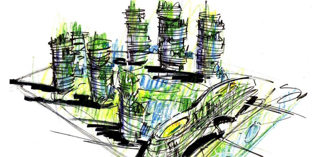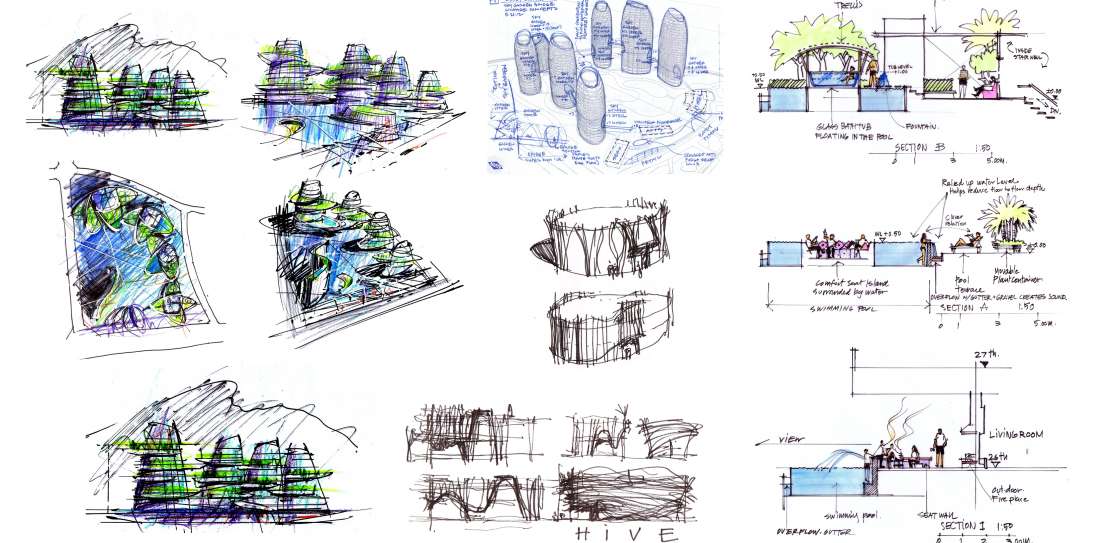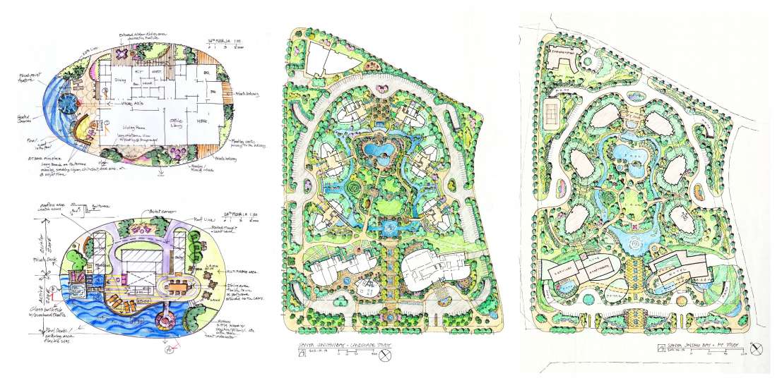 The focus of the master plan is an internal, pedestrian-oriented garden space which includes water features, pools, play areas, walkways, sitting areas and facilities for social gatherings.
