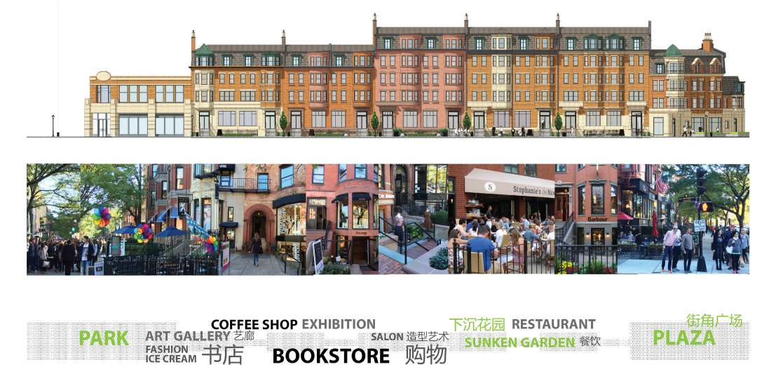 The design have endeavored to create a new urban area that portrays an essence of New England. Land is a valuable resource and in order to best utilize space, the verticality in architectural proportions of historic New England buildings, and in our design is. New England is a colonial region that reflects a wide range of European design influences. New England architecture is a rich regional tapestry of design experimentation and historic detail that confidently conveys heritage and tradition. In New England, protection from the elements is a priority and long-term functionality is essential. A demanding climate influences New England architecture and quality and durability are highly valued - building investments are intended to be useful for years.