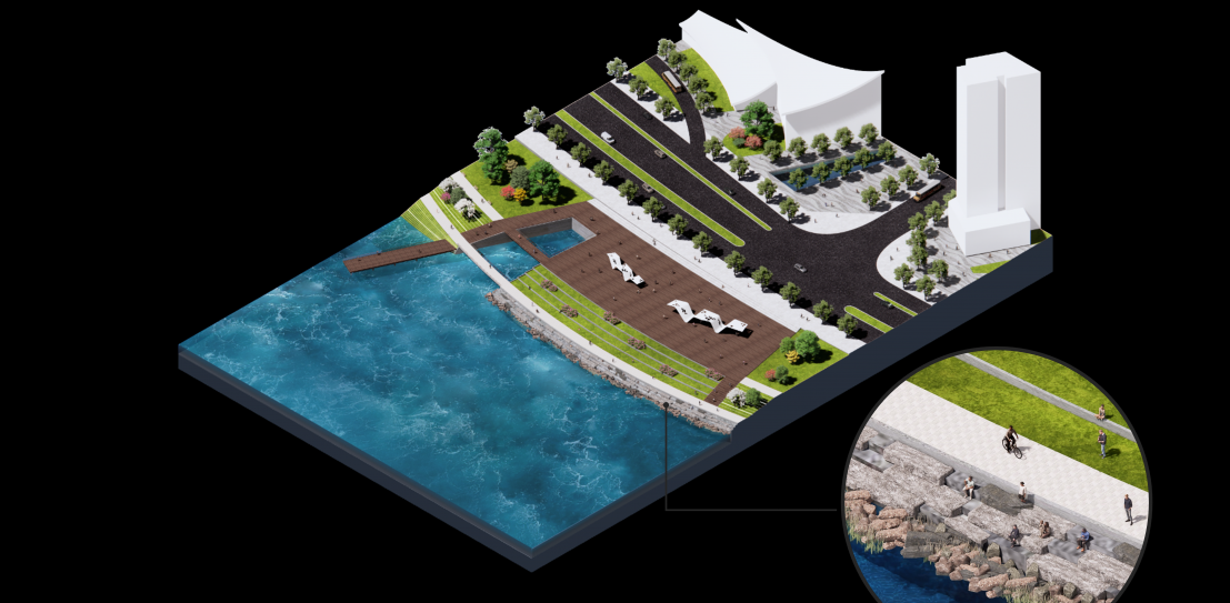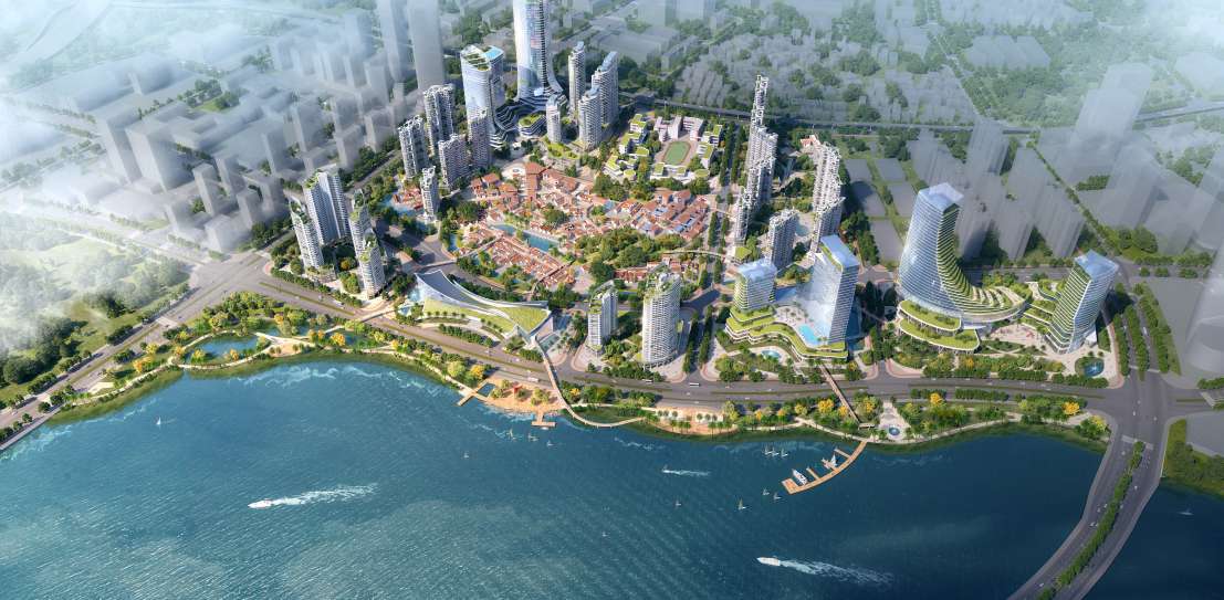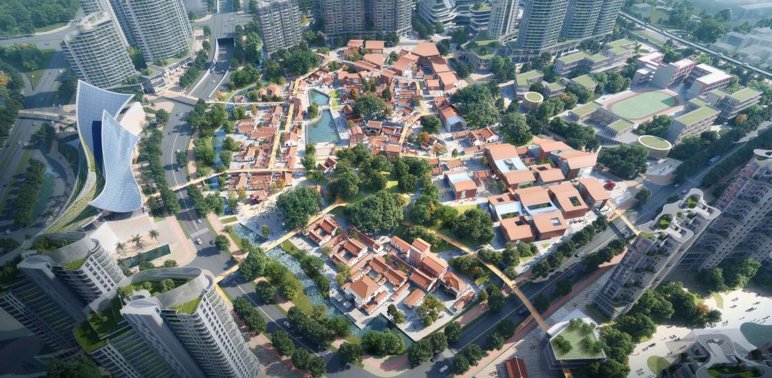 Ai +Architecture LLC was awarded a top prize in the competition to rehabilitate a historic village as a centerpiece of a new waterfront development area on Xiamen’s Maluan Bay. The landscape and open space structure is based on the existing topography and the movement and processes of water within the site boundaries and beyond. The design goal is to create a balance of functioning natural systems, preserved and reimagined village culture that underpins and supports new urban development. Ecological patterns are identified and strengthened to create a green infrastructure linked to a functional and pleasant open space network that promotes a healthy environment for residents and visitors. Connections to the Bayfront are an important part of the open space network, creating key linkages to the regional Maluan Bay greenway loop. Water areas, drainage ways and landscapes throughout the site are designed to collect, store and filter runoff to both improve water quality before reaching the bay and reduce flood risks. These open space features are integrated with recreational facilities and the pedestrian and slow traffic network to create a functional, healthy, green framework for the community. The landscape structure emphasizes the pedestrian and open space connections through the site and to the Bayfront and surrounding urban context. East-west streetscape linkages are combined with the north-south Bayfront and village eco-corridor to provide an overall landscape framework for the community. The hillside park features a dramatic overlook and a beautiful garden setting that steps down to the existing ponds and surrounding promenades, providing attractive open spaces for village residents and visitors as well as wedding photo opportunities. A system of pedestrian bridges provides comfortable, safe and convenient access throughout the entire community as well as to the Bayfront park. Sponge City initiatives helping to reduce storm water runoff and support a healthy environment include extensive use of green roofs, rain gardens, water storage vaults, pervious surfaces, bio-swales and filtering wetlands and ponds.